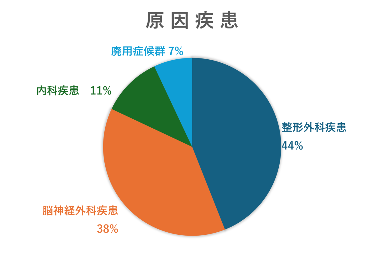 関節痛などの整形外科疾患が半数近くを占めています。次に多いのがやはり脳梗塞です。