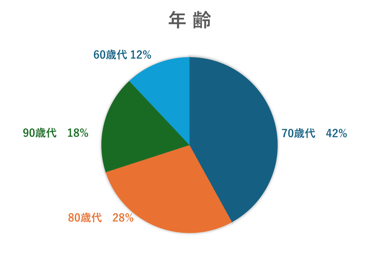 年齢別に見ますと、70歳代と80歳代で半数以上を占めています。介護保険サービス利用の有無は、全年齢層で3割程度で、皆さんなるべく介護状態にならないよう頑張って取り組まれていることがうかがえます。