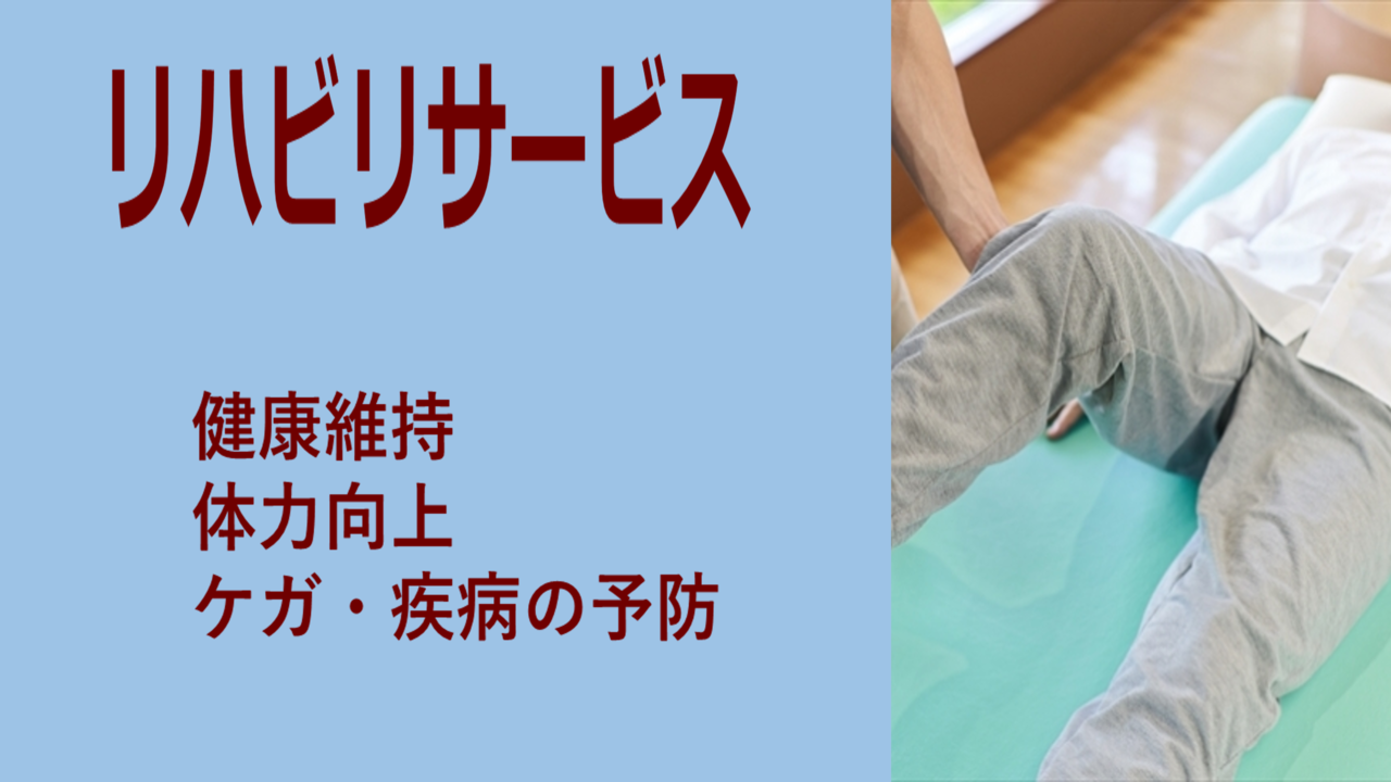 また、お客さまの体力や生活環境・スタイル、リハビリ目標などを考慮した自主トレメニューのご提案もさせていただきます。